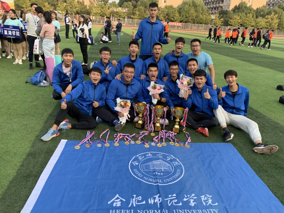 体育科学学院学子在比赛中勇于拼搏,发挥出色,充分展示了合师学子积极进取的精神风貌。在丙组的比赛中,田径队包揽了男子100米、200米两个项目的前三名,其中2018级体育教育专业朱秀东同学获男子100米冠军;2017级运动训练专业张瑞旭同学以21.78秒的成绩打破了由自己保持的男子200米赛会纪录并获冠军,樊鹏昊同学获得男子400米、800米两个项目冠军,张业东同学获男子标枪冠军;2019级运动训练专业方凯同学获男子5000米、10000米两个项目冠军,丁利广同学获男子三级跳远冠军,王琰璞同学获男子铅球冠军;由2018级体育教育专业朱秀东、2018级运动康复专业刘习涛、2017级运动训练专业樊鹏昊、2017级运动训练专业张瑞旭四位同学组成的男子4*100接力队以42.50秒破赛会纪录的成绩获得冠军,由2017级运动训练专业张瑞旭和樊鹏昊、2018级体育教育专业王鑫豪和朱秀东四位同学组成的男子4*400接力队以3分20秒19破赛会纪录的成绩获得冠军;2019级运动训练专业李倩同学获女子100米冠军、以25.50秒破赛会纪录的成绩获200米冠军;2016级体育教育专业金东华同学获女子跳远冠军,姜月同学获女子铅球冠军并实现自己在该项目上的三连冠;由2017级运动训练专业张静茹、2016级体育教育专业金东华、2017级运动训练专业张晓敏、2019级运动训练专业李倩四位同学组成的女子4*100接力队获得冠军。2016级体育教育专业金东华同学获女子100米栏亚军;2017级运动训练专业张瑞旭同学获男子100米亚军,张晓敏同学获女子200米、400 米两个亚军; 2018级运动训练专业梅乔雨同学获女子跳高亚军,高林林同学获女子1500米、5000 米两个亚军;2018级体育教育专业朱秀东同学获男子200米亚军,王鑫豪同学获男子丙组400 米栏亚军,由2019级运动训练专业李倩、2016级体育教育专业金东华、2018级运动训练专业高林林、2017级运动训练专业张晓敏四位同学组成的女子4*400接力队获得亚军。2018级运动康复专业刘习涛同学获男子100米、200米两个季军;2018级体育教育专升本班王鑫豪同学夺得男子400米季军;2018级运动训练专业孟伟琦同学获男子跳高季军;2019级运动训练专业丁利广同学获男子跳远季军。