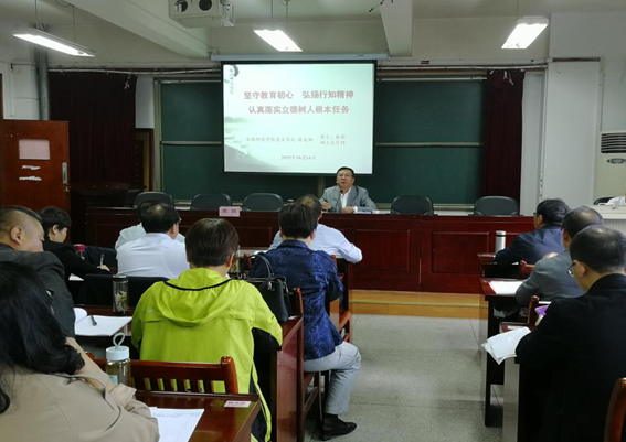 本网讯10月14号下午,院党委书记、安徽省陶行知研究会会长徐成钢来到三孝口校区,为全省第53期高(完)中校长任职资格培训班和第21期中等职业学校校长任职资格班的全体学员作“坚守教育初心 弘扬行知精神 落实立德树人根本任务”学术报告。