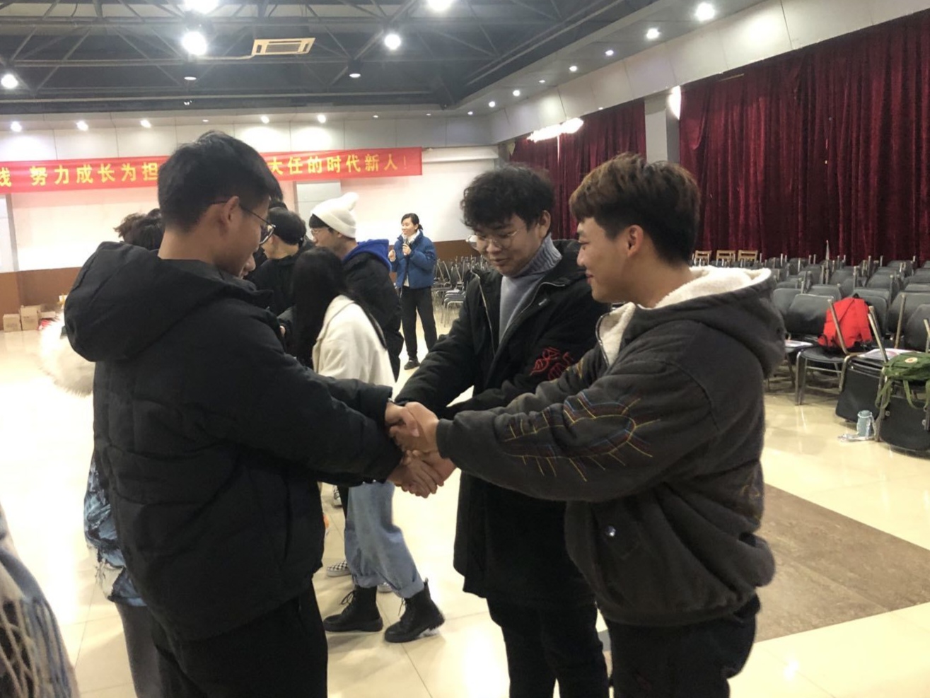 活动伊始,陈梦莹讲解此次素质拓展的目的,为帮助同学彼此了解,促进同学间交流与熟悉,体会同学间的坦诚与信任,帮助同学快速融入集体,先后进行了“手拉手竞技”、“转呼啦圈”、“设计队徽”等寓教于乐的游戏环节。在同学的欢笑声中,素质拓展活动接近尾声,同学间的彼此配合,团结合作,圆满完成团队任务。