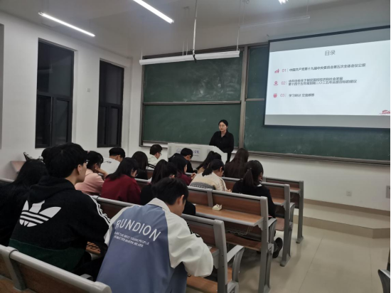 本网讯 为深入学习贯彻党的十九届五中全会精神,推动理论学习入脑入心,11月13日晚,外国语学院学生第二党支部在铭传楼A305教室召开理论学习会,组织支部入党积极分子学习党的十九届五中全会精神。