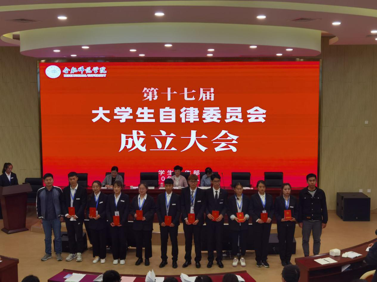 本网讯 11月11号下午,第十七届大学生自律委员会成立大会在滨湖校区刘铭传楼学术报告厅举行。学生工作部部长陆涛,副部长刘艳,学生工作部老师葛畅、韦小龙、赵峰出席,第十七届大学生自律委员会全体成员参加。大会由第十七届大学生自律委员会生活协管部部长张卓佳主持。