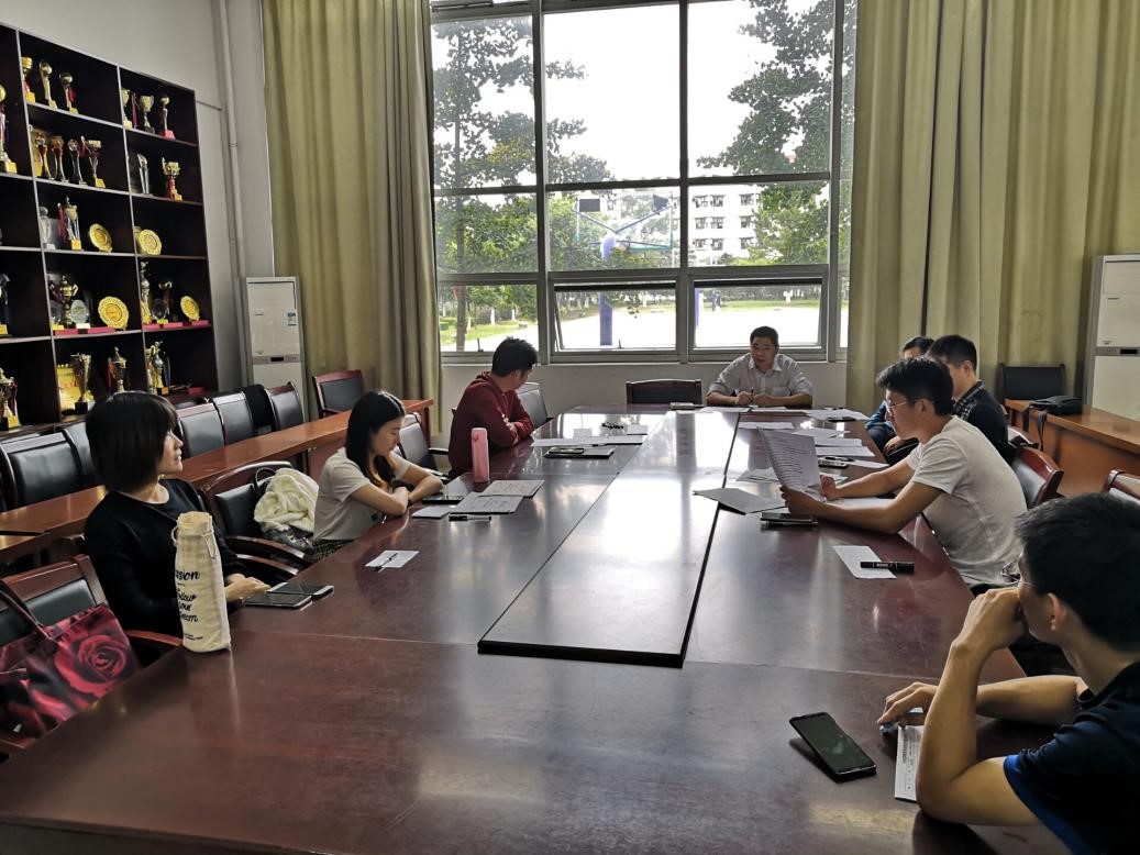 本网讯 为公平、公开、公正地做好2020学年国家奖学金评选工作,表彰和奖励2019-2020学年中学习成绩优异、综合表现突出的体科院学子。9月25日中午,体育科学学院在锦绣校区体育馆会议室召开了2020年国家奖学金评审会议。学院党总支书记杜文龙、副书记王飞,支部书记、全体辅导员、班主任参加本次评选会。