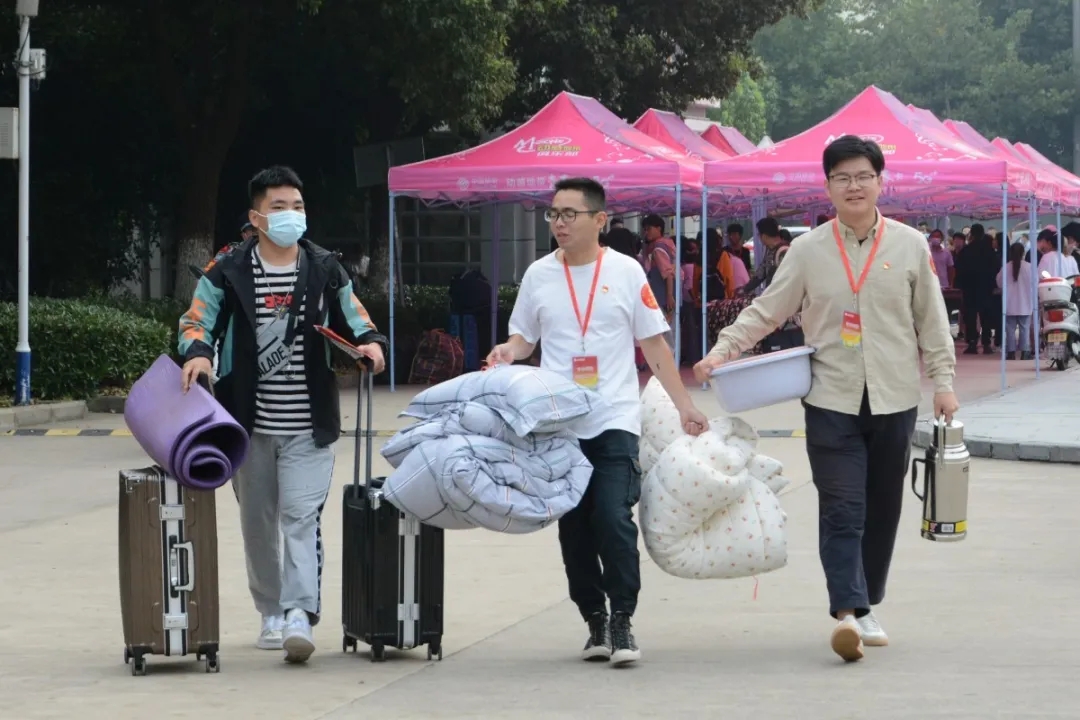 报到现场,人头攒动,博约楼、宿舍楼前热闹非凡,各项工作有条不紊。学院辅导员老师耐心解答学生的问题。学生志愿者活跃在校园各处,为新生提供热情周到的咨询和服务,成为了校园一道亮丽的风景线。