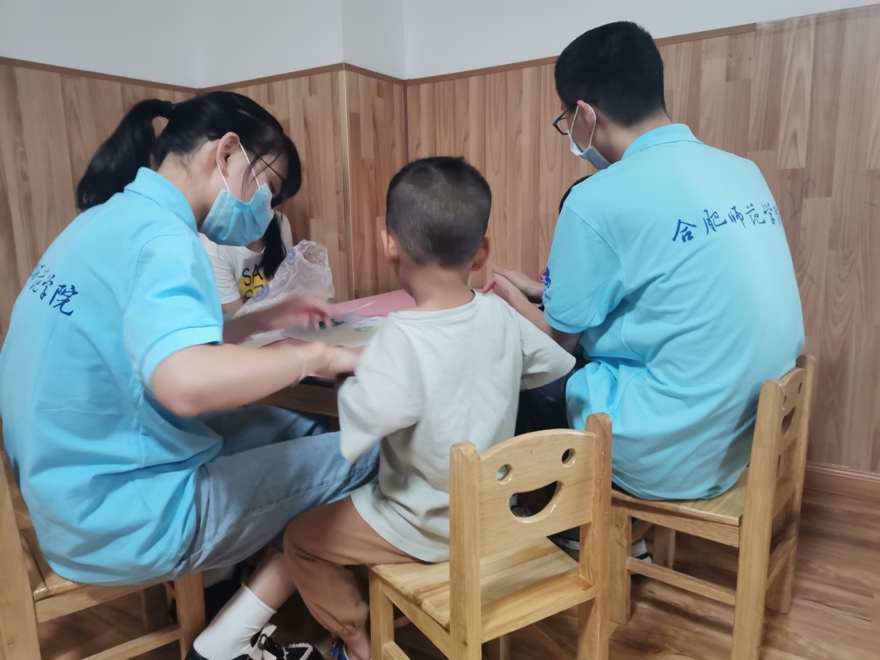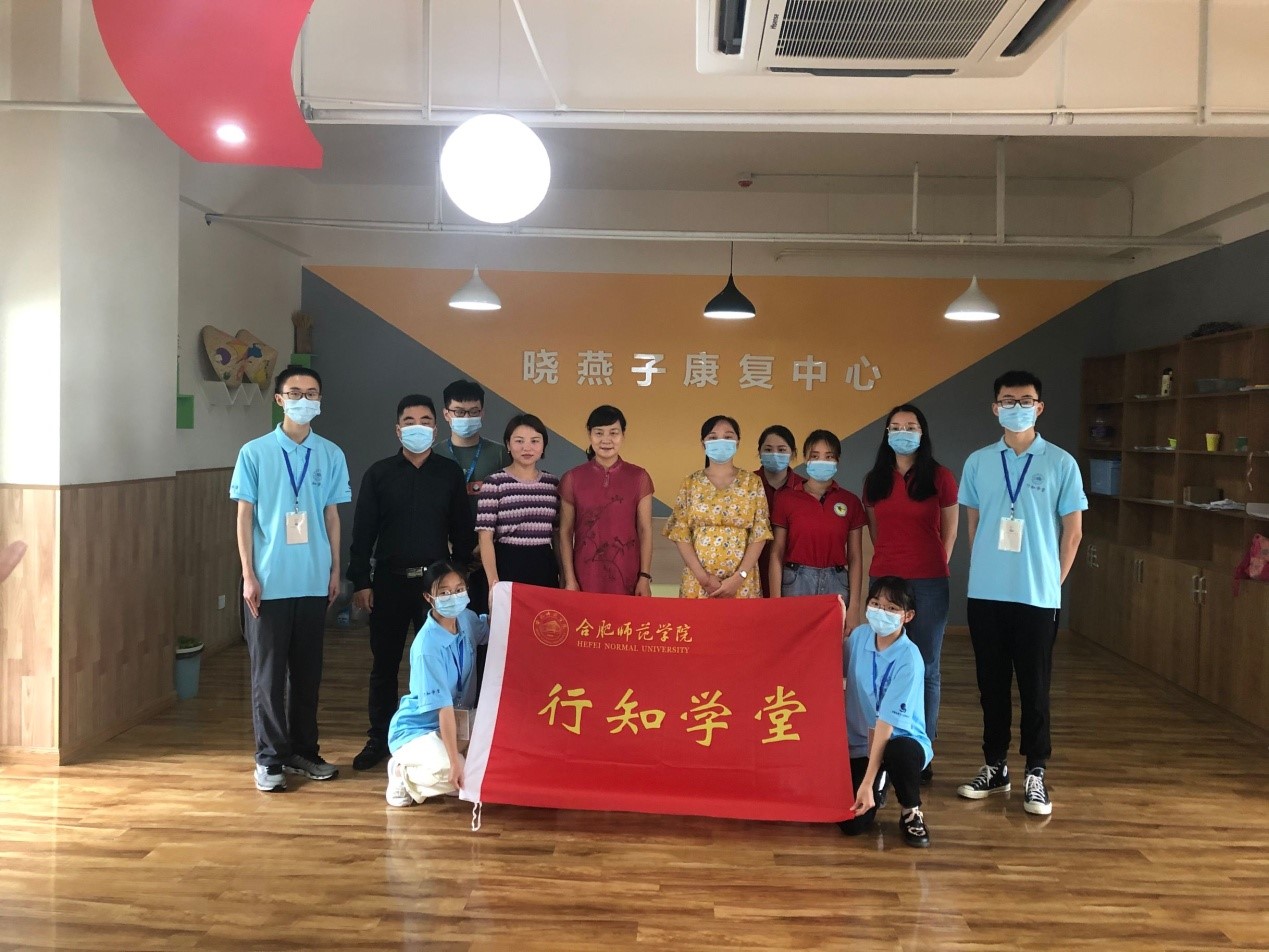 本网讯 星星闪烁光芒,行知奉献力量。为响应团中央和学校开展暑期社会实践活动的号召,践行“爱满天下知行合一”的校训精神,2020年暑期,学校与经开区莲花社区连续第二年合作开展“星星守望——关爱自闭症儿童”志愿服务项目,在合肥市经开区思语自闭症儿童康复中心、梦之桥自闭症儿童康复中心、晓燕子自闭症儿童康复中心开设了3家特殊“行知学堂”。