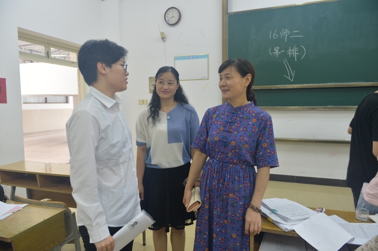 在博约楼110教室,毕业班辅导员带领一早到达的党员、班级干部组成毕业生服务工作小组,提前准备好毕业离校所需要的各种材料,确保材料收发有条不紊,避免忙中出错。同时,辅导员们线上线下叮嘱学生们在疫情期间要注意自身安全,遵守学校的管理规章制度,并耐心地为返校学生做好问题解答,注意及时疏散教室的聚集人群。在教室报到后,学生们回到宿舍进行行李的整理、运送,完成寝室退宿等相关手续,符合毕业离校要求的毕业生方可返回教室领取毕业证书等材料。数学与统计学院党委书记郑支农、副书记穆娟深入东门驻守岗位和博约楼110教室,指导辅导员和毕业生完成返校手续,并与返校学生亲切交谈,了解他们的就业情况。