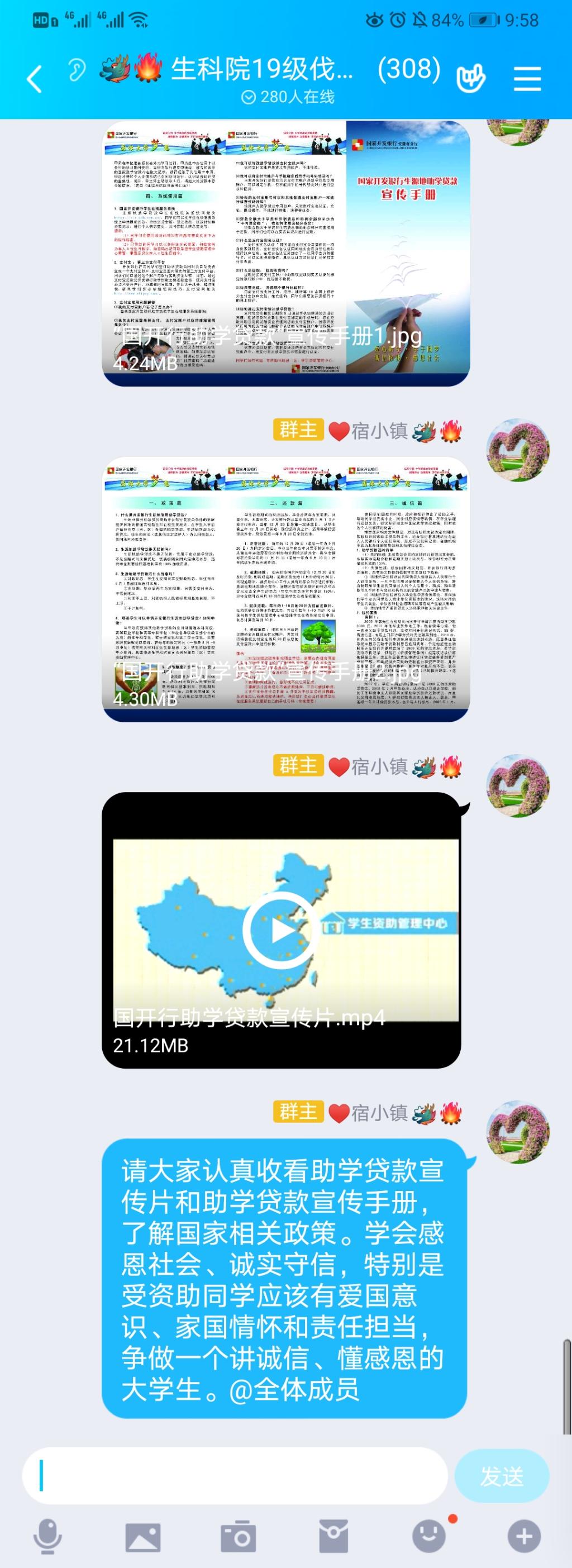 二是观看影片及发放宣传手册。生命科学学院各个年级辅导员分别将助学贷款宣传片、宣传手册ppt线上发放给学生,让学生更加熟悉贷款流程。