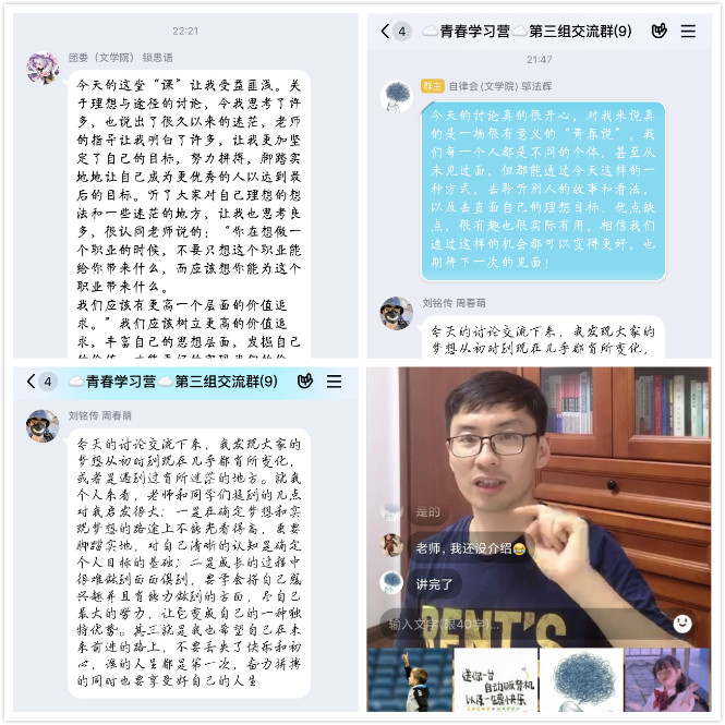 本网讯 近日,“青春学习营”第三组进行了第三次线上学习沙龙活动,指导老师、音乐学院辅导员许曦和全体学员参与分享。