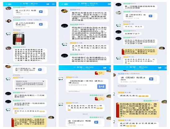 本网讯 古人云:“书中自有黄金屋,书中自有颜如玉”。在学校举办的“书香四月,‘云’上分享”主题活动中,19级财务管理1班同学们热情参与,争当“爱读书,会读书,乐读书”的新时代好青年。在整个读书活动中,大家感受到了读书的乐趣,更加明白了读书的重要性,从阅读书籍,写读书笔记,到线上交流读书心得,同学们都十分的积极的参与。