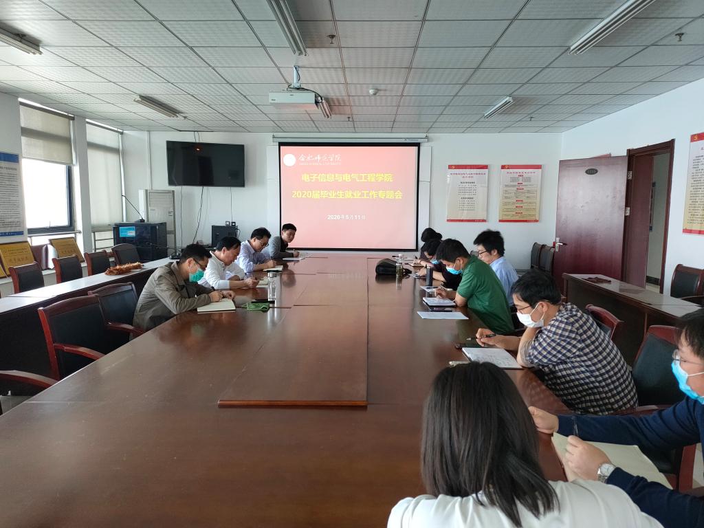 本网讯 为切实做好电子信息与电气工程学院2020届毕业生就业工作,实现学院毕业生充分高质量就业,5月11日下午,电子信息与电气工程学院召开就业工作推进会。电子信息与电气工程学院党委书记李如彬主持会议,学院党委委员、教研室主任、辅导员参加会议。