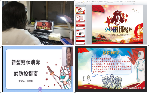 2017级经济统计班王国庆、2018级数学与应用数学师范班张盛龙、2018级金融工程班肖丹丹等7人组成支教团队,在疫情期间开设“行知在线学堂”为中小学生提供线上课业辅导,宣传防疫知识,同时对小学员们进行爱国主义教育;2018级数学与应用数学师范班共开设3个线上行知学堂为广大医护、社区防疫工作人员和贫困家庭学生提供免费课业辅导等服务,同时在雷锋月期间为小学员们讲述身边的雷锋故事,传承雷锋精神,弘扬社会主义核心价值观。疫情稳定后,2018级数学与应用数学师范班刘琦定期到村里孤寡老人家中,进行疫情防控知识宣传的同时帮助老人做家务、陪伴老人谈心,力所能及地帮助身边的困难群体,践行雷锋精神。通过参与公益志愿服务,广大学子用红色青春凝聚战斗力量,在抗“疫”战场践行初心使命。
