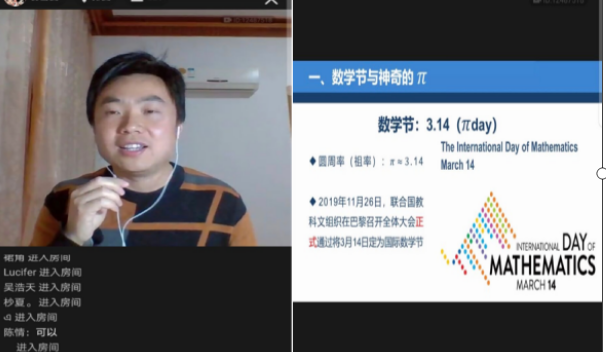 此次活动包括数学文化宣讲、线上趣味竞赛和在线专题讲座三个部分。学院在数统院官方微信公众号中开展“数学文化开讲啦”系列宣讲,介绍了“0”的故事、生活中的黄金分割、三门问题、三角形的内角与外角和等极具趣味性的数学小知识;通过开展线上趣味竞赛,加强了学生对此次文化节的参与性和互动性。同时,此次文化节邀请了数学与统计学院副教授、全国优秀教师黄浩以网络直播的形式开展了“数学无处不在”的线上主题讲座。该讲座集专业性和趣味性于一体,通过讲述数学的发展史、数学的作用、如何学好数学等内容带领学生们进行了一场精彩的数学文化之旅,并且结合此次新冠肺炎疫情,讲述疫情中数学建模的重要作用,激发学生对数学学习的兴趣和社会责任感。该讲座在线参与学生数近300人次,深受广大师生好评。