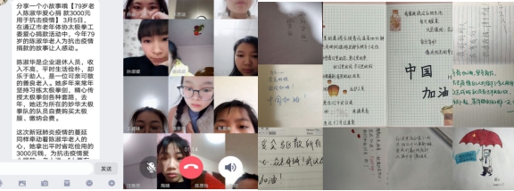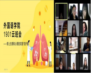 本网讯 为深入学习贯彻习近平总书记关于新冠肺炎疫情防控的重要讲话精神,进一步激发广大青年学子的责任担当,深入推进爱国主义教育,引导其为助力国家、社会和学校打赢疫情防控阻击战贡献青春力量。外国语学院各班积极响应号召,利用线上“云”平台开展“众志成城共克时艰 坚守使命服务青年”的主题班会。