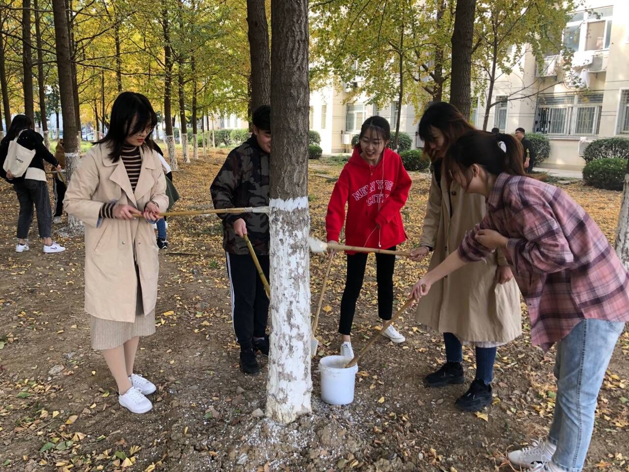 实践活动虽然只有一个中午的时间,但大家受益匪浅,不仅认识到了环境保护的重要性,同时也在给树木刷石灰水时,了解到本专业植物的相关知识,了解到冬天给树木刷石灰水是为了杀虫杀菌,减轻春天病虫危害,以及防树皮被动物咬伤和防冻害保温,更是体会到了劳动者的不易以及劳动带来的快乐。