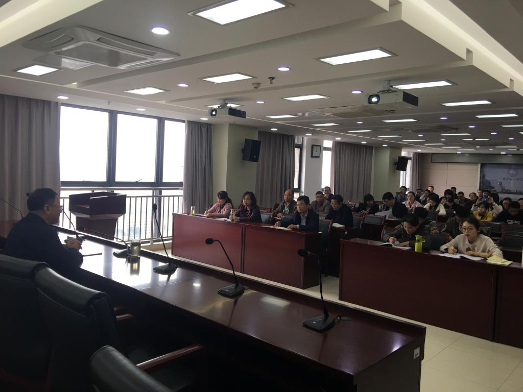 本网讯 根据学院主题教育领导小组统一部署和安排,机关二总支精心筹划、认真组织“总支书记上党课”和“支部书记上党课”活动。近日机关二总支和下辖九个支部分别举办“书记上党课”活动。11月6日下午,二总支召集全体党员进行专题党课学习教育活动。总支书记许俊农结合自己前期调查研究所取得的成果和发现的问题,做了“不忘初心贵在知、勇于担当重在行——皖台教育交流中党建引领作用”的专题党课。
