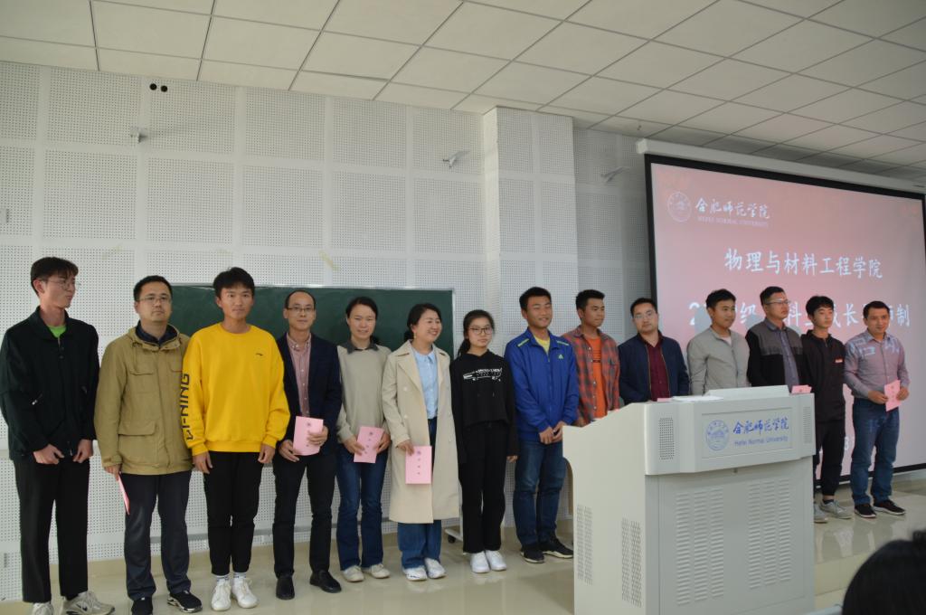 接着,物理系、新能源系、光电系、材料系四位系主任李冬鹏、訾振发、余龙宝、薛燕分别宣读了导师名单和结对指导学生名单,向同学们一一介绍了担任导师的老师们。