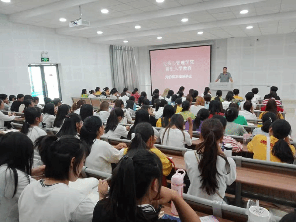 院党总支书记沈辉老师为2019级经管院新生上了新生入学教育第一课。他指出,大学时期,是播种理想、确立信念的黄金时期,是规划未来、设计人生的关键阶段。在宝贵的大学生活当中,应该有远大的理想、崇高的信念。沈辉老师向同学们介绍了党的历史、基本知识,使新生理解为什么要入党、了解党员的基本条件、入党的基本程序。沈辉指出,同学们应当“拥有梦想,志存高远”、“努力学习,立志成才”、“学会生活,学会做人”,用昂扬的斗志和饱满的精神,开辟和探索属于自己的大学生活。