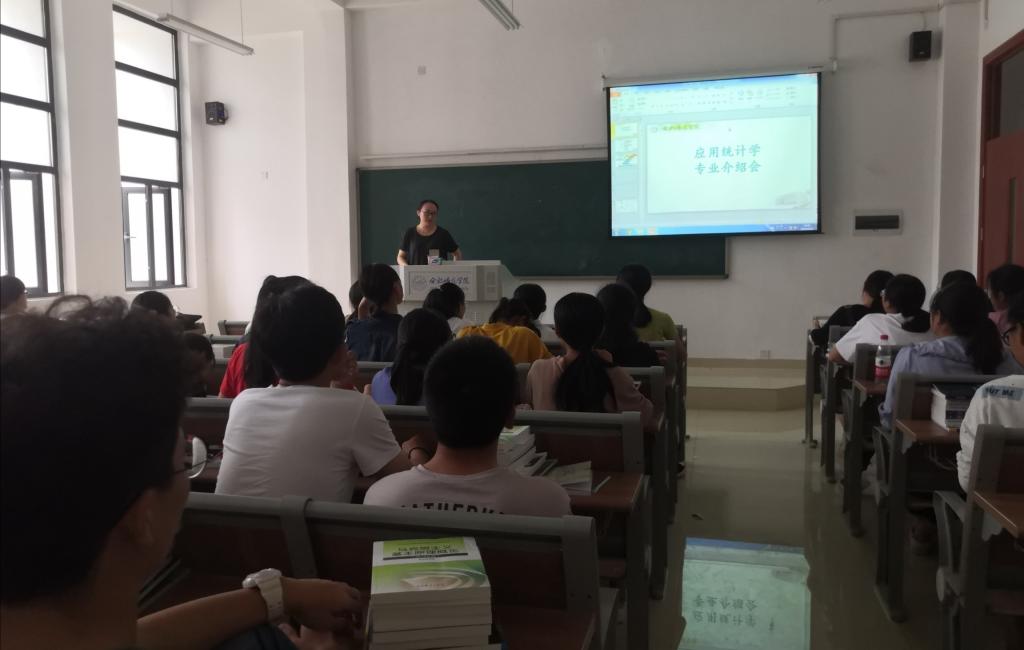 应用统计学的专业发展教育课程由应用统计学专业负责人李美蓉副教授讲授。李美蓉从应用统计学的专业发展现状、专业前景、师资力量、实验装备、教学质量等各个方面进行了详细讲解,告诫同学们“努力要在平时”,“要让自己的四年丰富起来”。应用统计学虽在我校招生时间不长,但发展势头喜人,社会对高学历应用统计人才存在大量需求。在学科竞赛比赛方面,李美蓉对一些A类、B类赛事进行了详细介绍,动员同学们积极参与此类竞赛,希望同学们在学习中有所收获,有所成长。