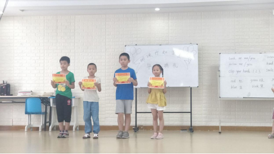 毕业典礼上,小学员们不遗余力地陆续将所学展示出来。首先登场的模特秀表演精彩夺目,孩子们尽情地展示自己的风采,迅速带动场上气氛。随后孩子们开始展示课上所学的内容:拍照技巧课教会他们如何端庄得体地面对镜头;英语口令课教会他们如何通过互动,愉快地学习外语;纽扣画课教会他们如何构思绘图,对艺术有更深的了解……二十天的“行知学堂”既教会孩子们许多知识,也给他们带来不同的体验与收获。
