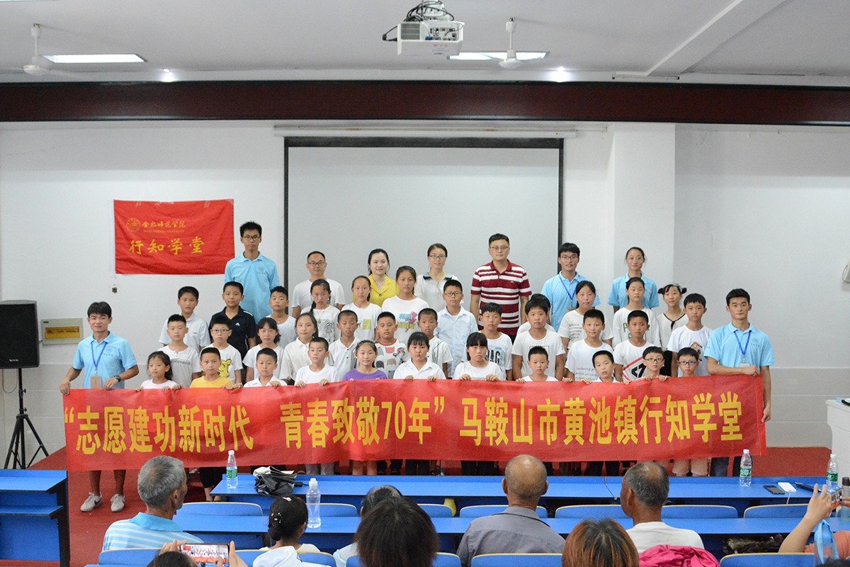 据悉,今年是学院首次与当涂团县委、黄池镇政府合作开办行知学堂,此次学堂以“青春致敬70年,志愿建功新时代”为活动主题,共有来自青年志愿者联合会的小先生6人,共招收小学员50人,在培养农村留守儿童兴趣爱好的同时,也着重培养小学员的爱国精神和文化自信,获得了良好的效果和当地政府、群众的好评。(青年志愿者联合会:吴涛)