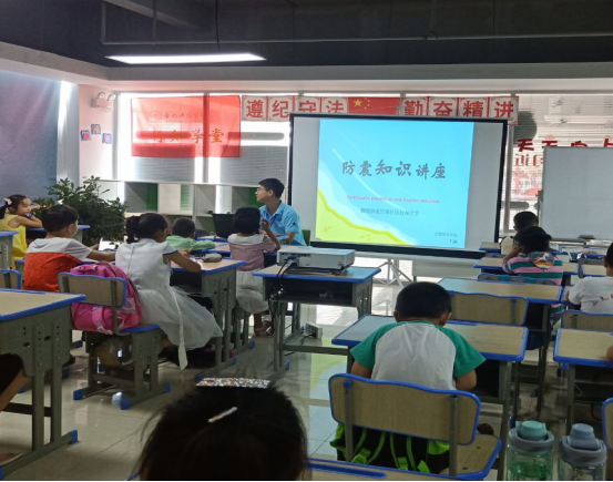 讲座主要通过展示唐山大地震现场照片及相关影视资料,并结合世界范围内地震的普遍案例,详细阐明地震的巨大破坏性,为小学员们普及震级的相关知识,生动地向小朋友们说明了地震来临前小动物们的异常行为、地光与地声等,并指导孩子们在地震预警的短短几秒内应该采取的措施。随后,“小先生”又向各位小学员阐述在地震来临时,身处不同区域和遇到特殊情况下如何进行自保和逃生,遭到掩埋该如何生存等。小学员们在浓厚的防震学习氛围中获益匪浅,课堂气氛十分活跃,大家积极举手回答问题。通过这场讲座,小学员们不仅学习了防震措施,而且对地质知识有了深入的了解,纷纷表示要认真学习防护知识,提高生存能力。