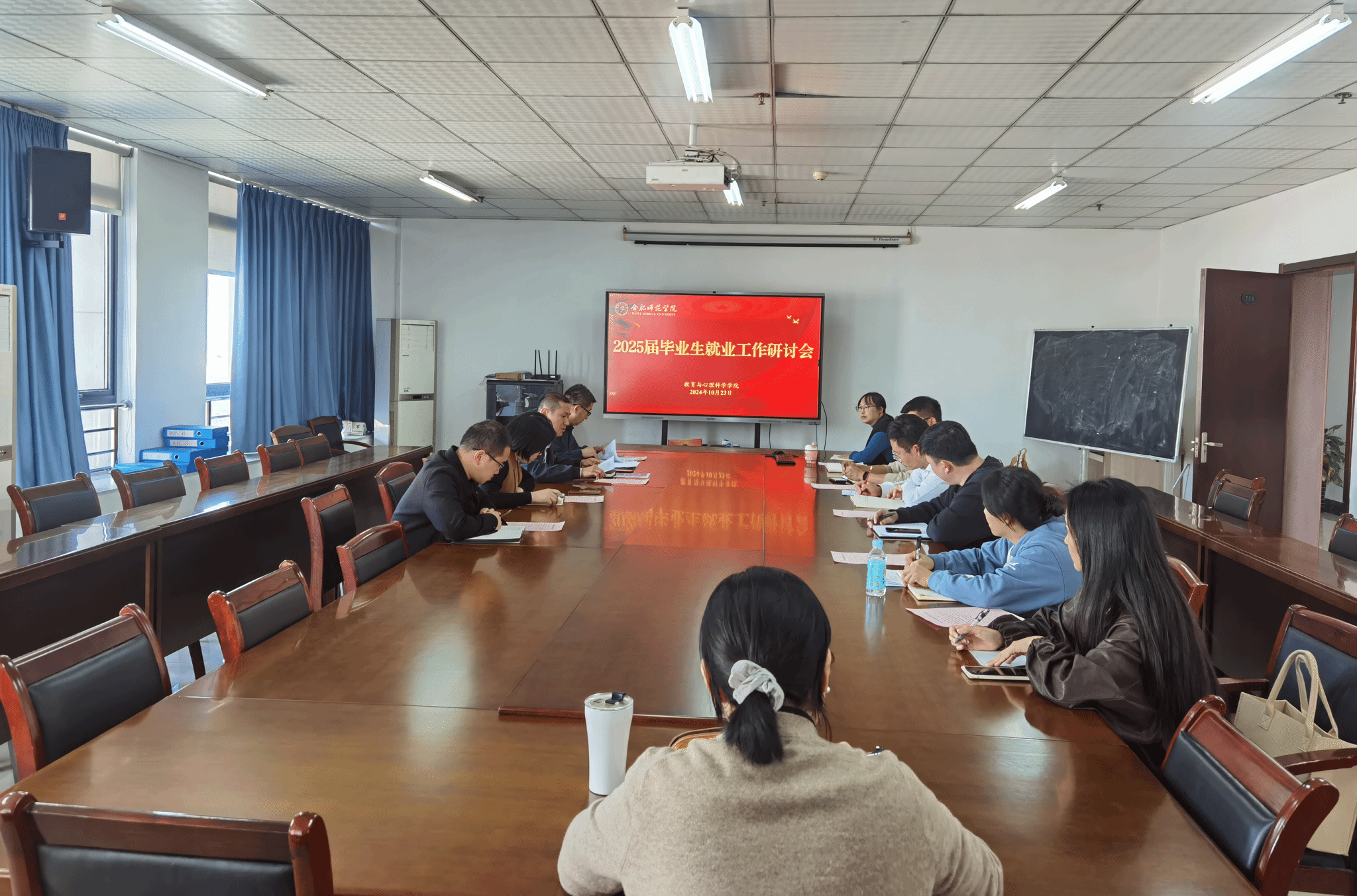 为进一步促进2025届毕业生高质量充分就业,10月23日下午,教育与心理科学学院在锦绣校区行知楼710会议室召开2025届毕业生就业工作研讨会,研究部署新学年学院就业工作重点任务。教育与心理科学学院领导班子、系主任、研究生班主任、毕业班专兼职辅导员参加会议,教育与心理科学学院党委副书记陈帅帅主持会议。