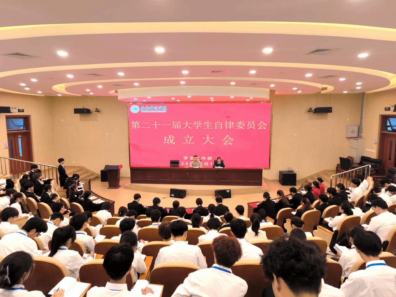 10月19日下午,第二十一届大学生自律委员会成立大会在滨湖校区学术报告厅举行。学生工作部部长刁文彬、大学生自律委员会指导教师葛畅及第二十一届大学生自律委员会全体成员参加会议。