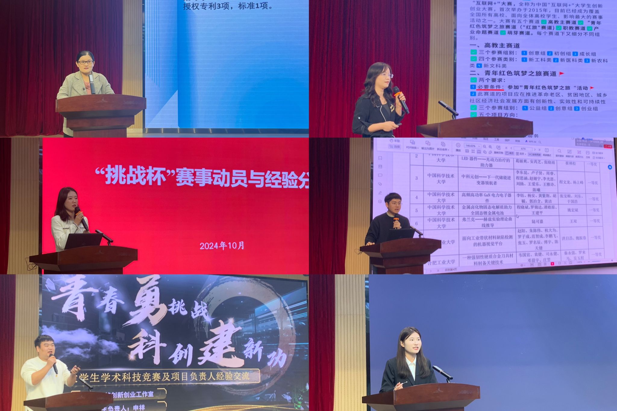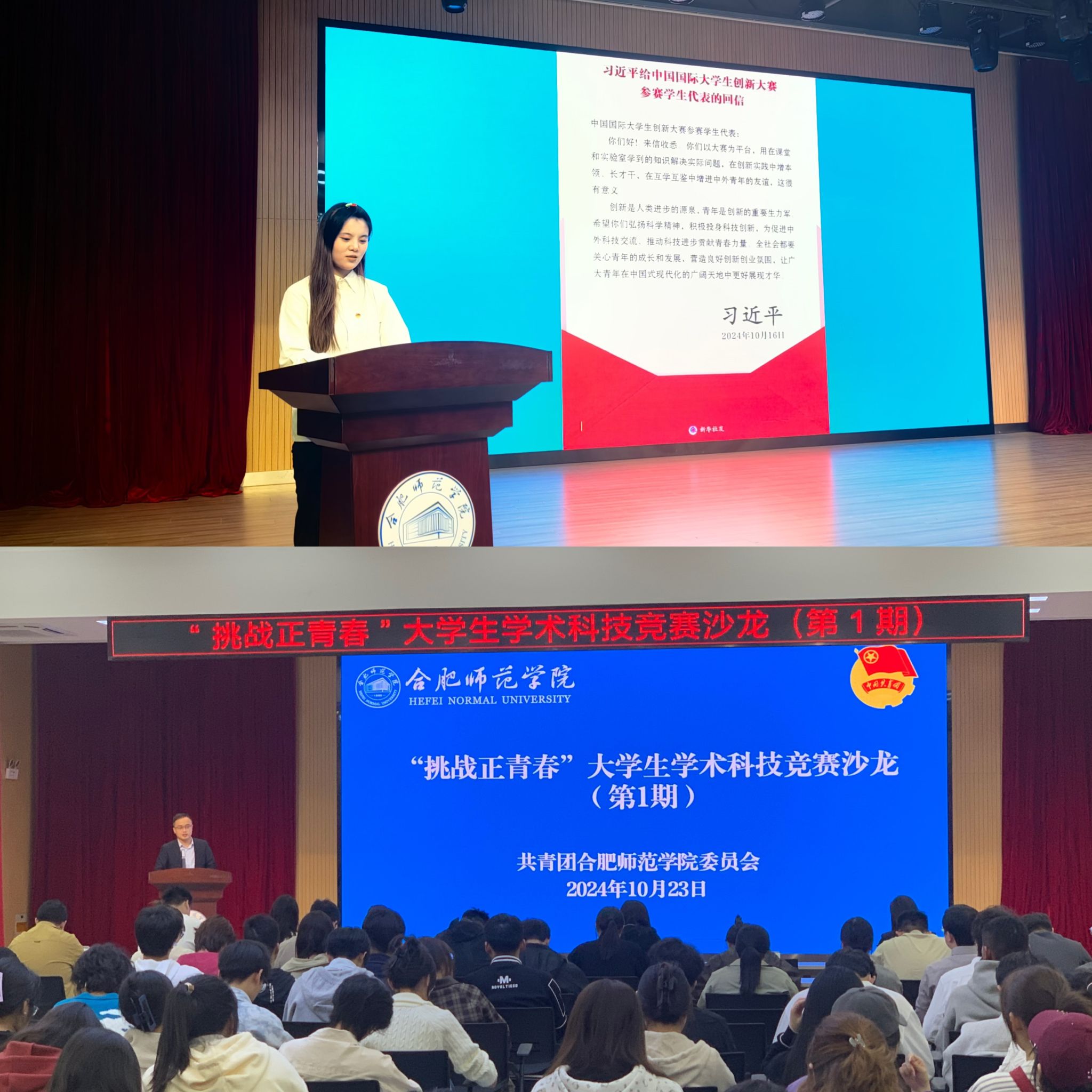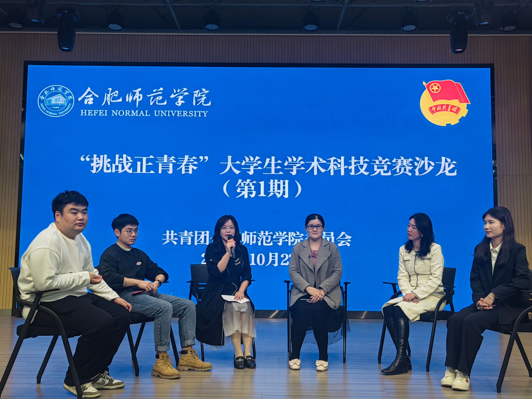 为认真学习贯彻习近平总书记考察安徽重要讲话精神和全国教育大会精神,进一步营造青年学生参与科技创新和学术竞赛的浓厚氛围,10月23日下午,院团委在锦绣校区大学生活动中心举办第一期“挑战正青春”大学生学术科技竞赛沙龙。活动邀请近年来指导和参与“挑战杯”学术科技竞赛并取得优异成绩的师生代表参加,与青年学生开展面对面交流,分享参赛经验,开展研讨互动。院团委兼职副书记吴杰主持活动,院团委副书记何磊致辞。