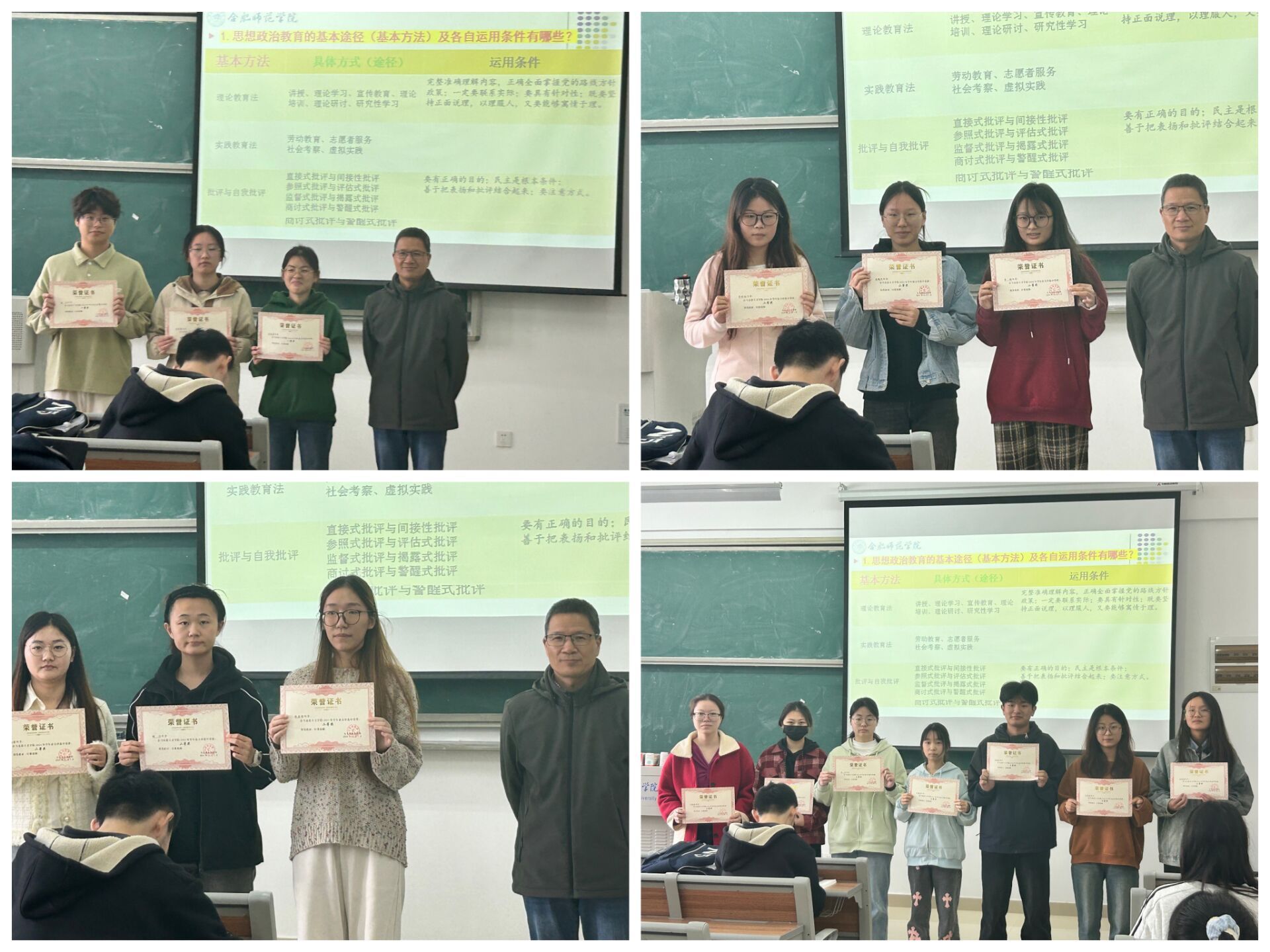 11月8日,马克思主义学院在滨湖校区铭传楼B303教室举行2024年度思想政治教育专业优秀学年论文颁奖活动,2023级思想政治教育班全体同学、院长何光辉、副院长方政参加了颁奖活动。