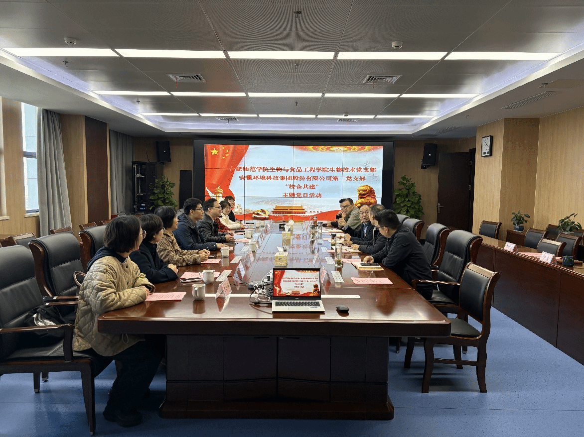 为深入学习贯彻党的二十届三中全会精神,拓展基层教工党支部建设的形式与内容,提升校企双方党建工作水平,开创基层党建工作新局面,生物技术教工党支部在支部书记陈金武带领下,于11月22日赴安徽环境科技集团股份有限公司开展党建共建活动。公司第二党支部书记、集团总经理助理、工程管理部总经理杨福德,宣传委员、规划设计院院长杨阳,纪检委员、成本控制部总经理蒋佩娟等领导及公司党员骨干热情接待了陈金武一行。