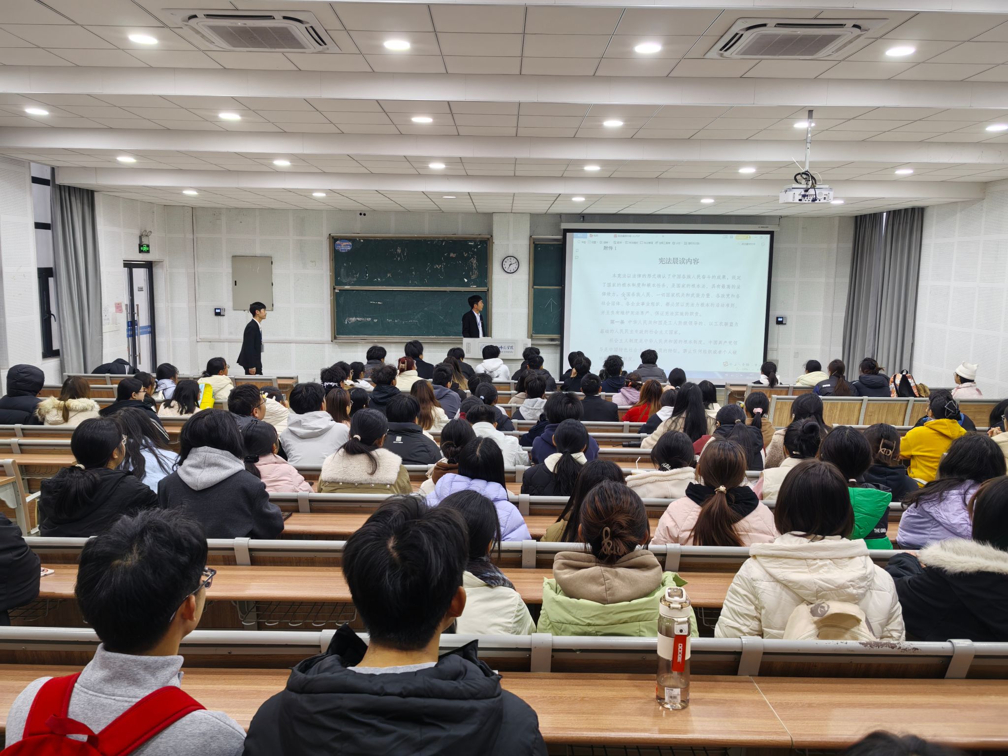 12月4日上午,院学生会于滨湖校区博学楼D101与锦绣校区共青之家带领同学们开展“宪法晨读”活动、观看教育部全国青少年普法网直播。随后,马克思主义学生会在现场举办案例分享会。同学们在活动后表示:今年“宪法宣传周”活动内容丰富,营造了“尊法、学法、守法、用法”的浓厚氛围,参与其中收获颇丰。