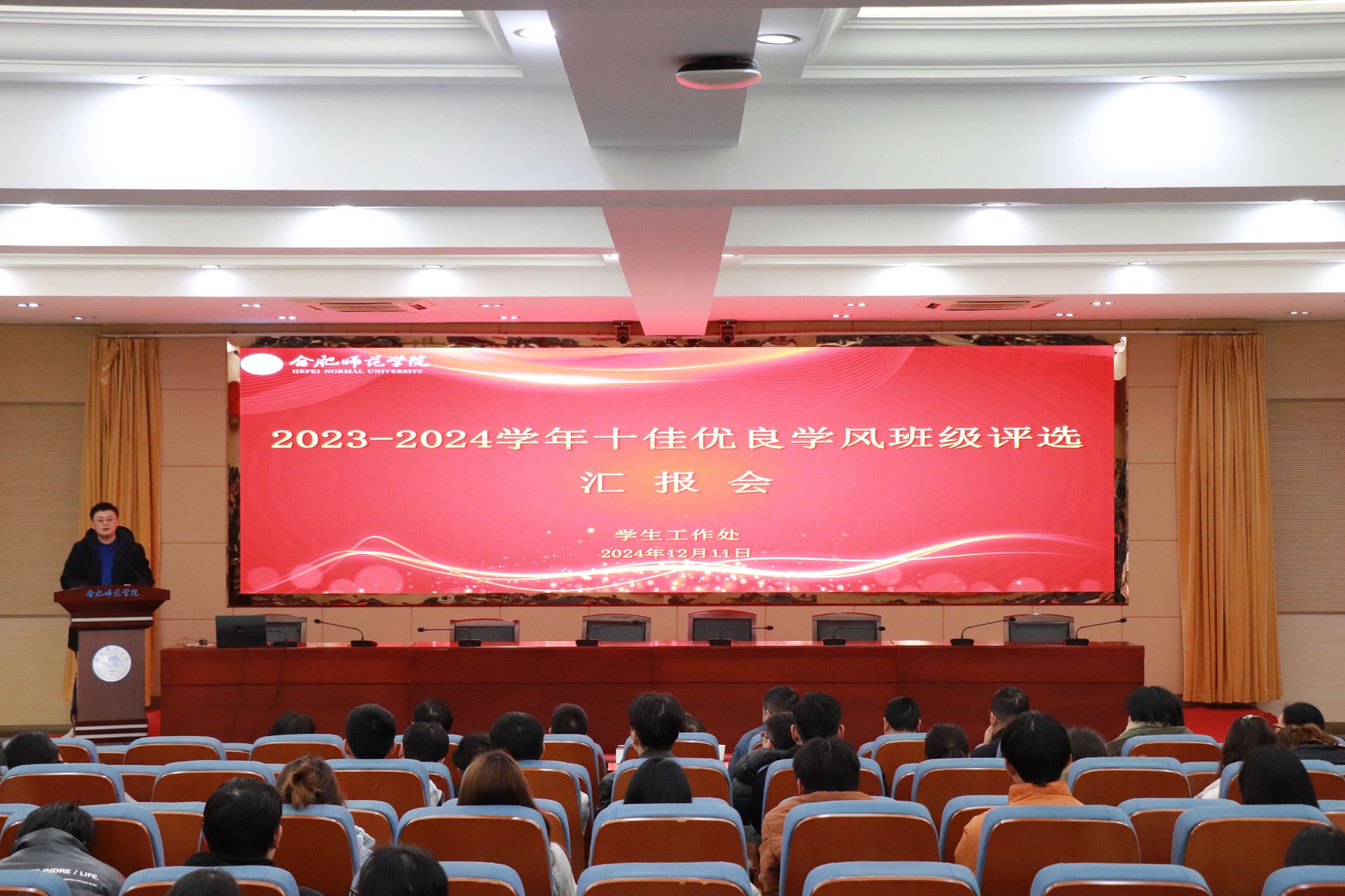 为培育优良学风和探索学风建设长效机制,坚持“关心学生成长、服务学生发展、促进学生进步”的工作主线,12月11日下午,学院在锦绣校区学术报告厅举行2023-2024学年“十佳优良学风班级”评选汇报会。党政办公室、巡察办公室、学生工作处、保卫处、滨湖校区综合管理办公室部门负责人担任评委,各二级学院党委副书记、全体辅导员和各二级学院学生代表到场观看。