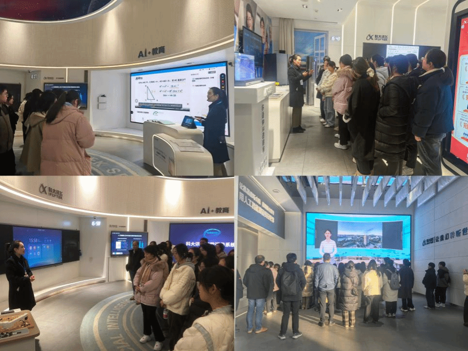 座谈结束后,学院一行参观了科大讯飞人工智能体验馆。展厅内各类智能设备琳琅满目,智能录音笔可以实时传译,电子纸书集墨水屏、会议记录、手写笔记于一体,电脑能够合成出如真人般的语音。讯飞星火大模型凭借卓越的自然语言处理能力和深度学习能力,已经在汽车、教育、医疗等行业成功应用。学院一行重点感受了科大讯飞智慧教育展区,大数据精准教学、个性化作业、智能组卷、智能阅卷等智慧教育产品功能,让同学们切实感受到了科学技术对学习和生活的改变。