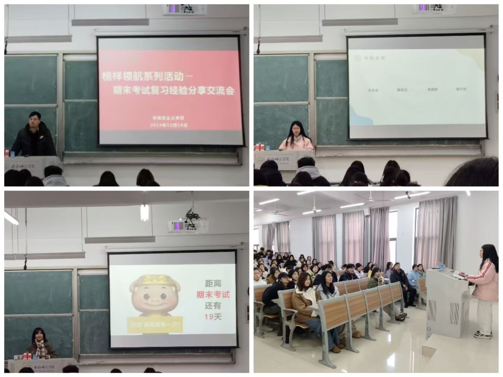 期末考试日益临近,为帮助2024级新生同学明确复习方向、合理规划时间及缓解考试压力,马克思主义学院于12月18日在滨湖校区铭传楼B304教室举办了“榜样领航系列活动之一:期末考试复习经验分享会”活动。