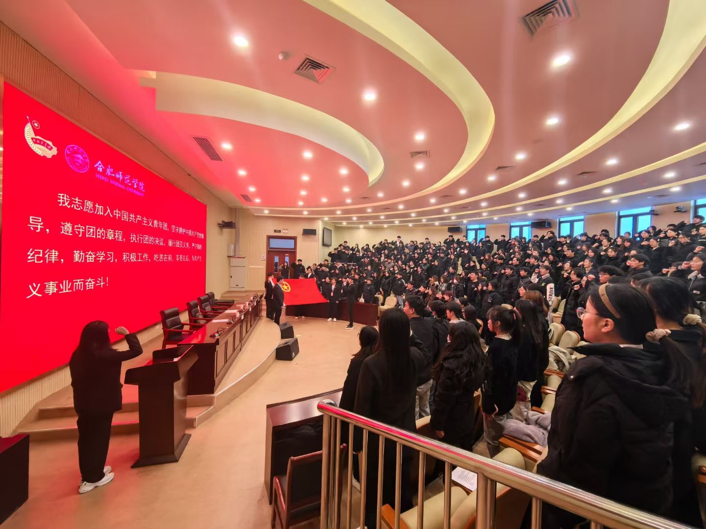 12月19日和26日,学院2024年新团员入团仪式于锦绣校区大学生活动中心和滨湖校区学术报告厅举行。院团委书记刁文彬、院团委副书记何磊,院团委姚瑶、魏晓倩、钟树旺,2024年全年新入团的460名团员参加仪式。