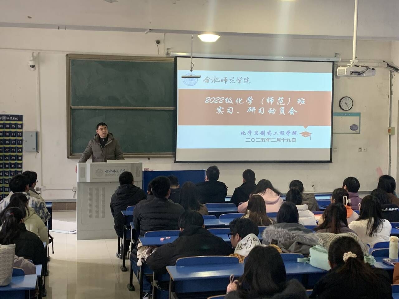 本次动员会的顺利开展,不仅为即将踏上教育实习征程的化学专业学生们指明了方向、鼓舞了士气,更为他们顺利完成实习任务、实现个人成长与职业发展奠定了坚实的基础。(化学与制药工程学院:王骏)