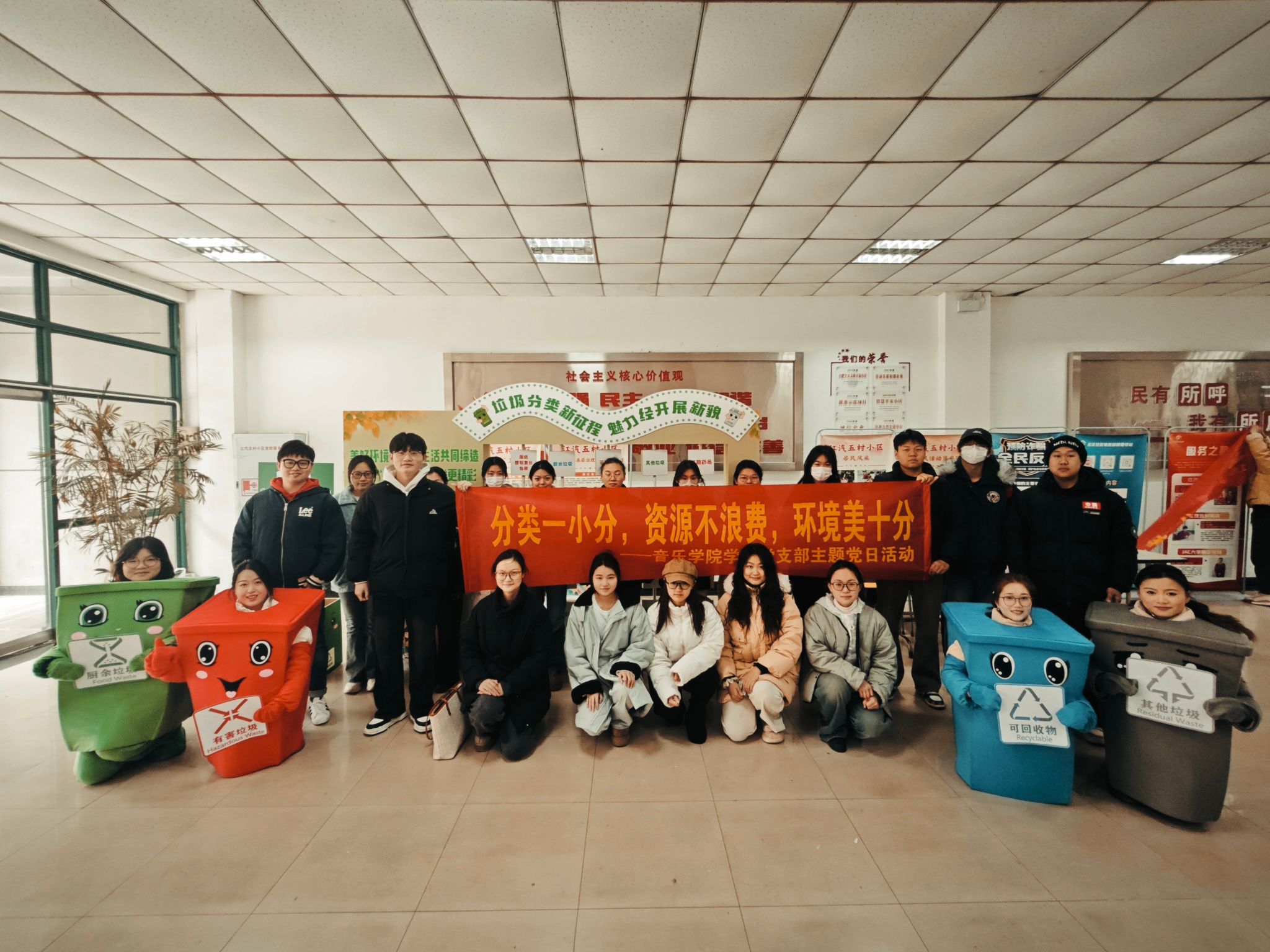 2月22日上午,388vip太阳集团音乐学院学生党支部联合合肥市江汽五村小区党群服务中心,组织开展“分类一小分,资源不浪费,环境美十分”主题党日活动。二十余名学生党员深入社区,通过宣传讲解、互动体验、实践指导等形式,助力提升居民垃圾分类意识,推动环保理念落地生根。