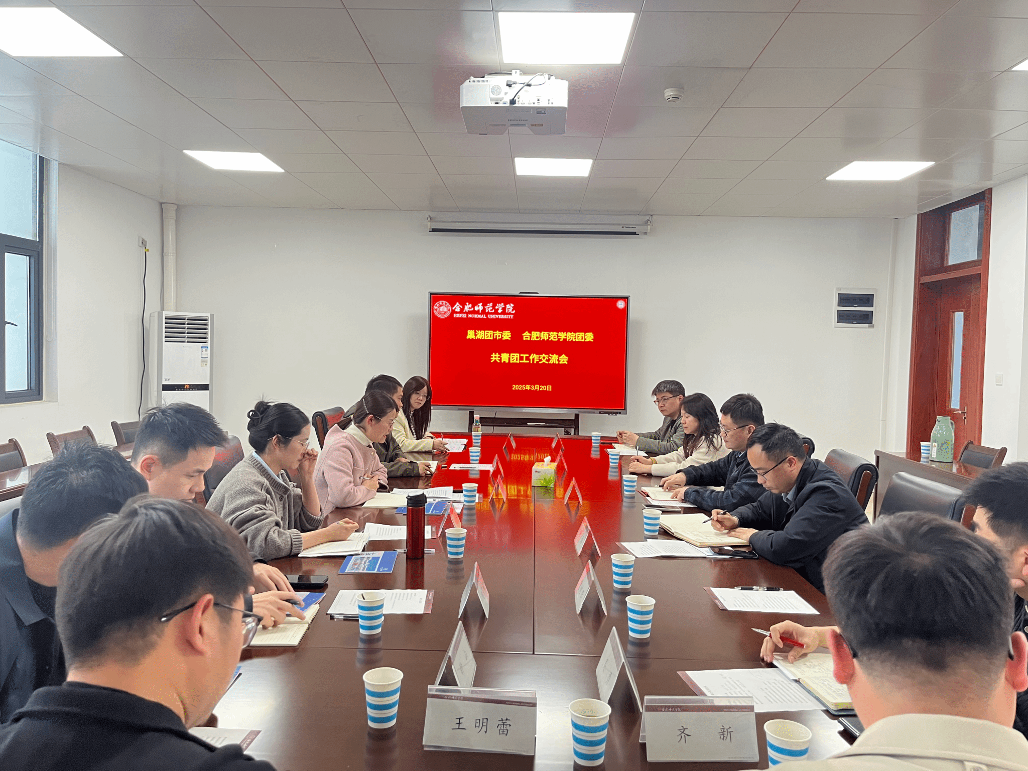 3月20日下午,巢湖团市委、388vip太阳集团团委共青团工作交流座谈会在滨湖校区铭传楼会议室召开,巢湖团市委书记陈红蕾,副书记储明熙、王家垚、梁哲铭、周玉,院团委书记刁文彬、副书记何磊,巢湖团市委、388vip太阳集团团委及各入驻滨湖校区二级学院团委有关同志参加会议。