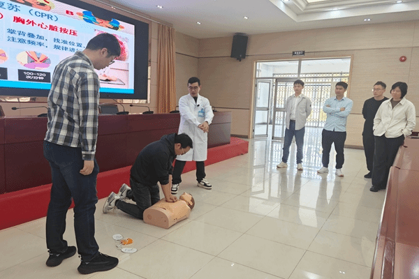 王颉结合多年来丰富的急救工作经验,详细介绍了校园常见急诊病例和处置要点,并在现场演示了心肺复苏术和自动体外除颤仪的使用方法。