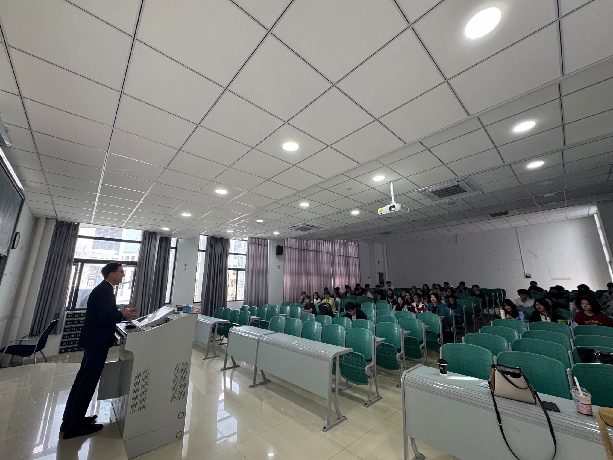 之后,Juan Lázaro与到场的同学们用西班牙语开展了互动交流,就西班牙语专业学习、西班牙文化理解和内布里哈大学学习等相关话题进行了深入的沟通。
