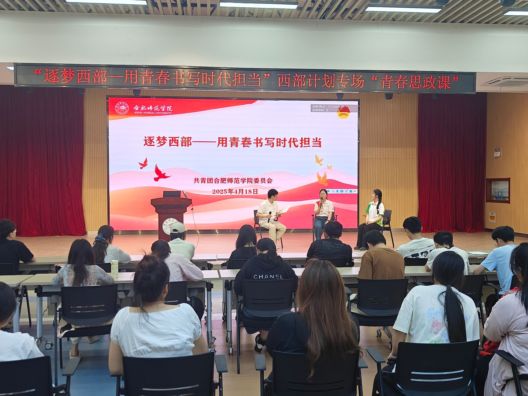 为引导青年学子将个人理想融入国家发展大局,4月18日下午,院团委在锦绣校区大学生活动中心举办“逐梦西部——用青春书写时代担当”西部计划专场青春思政课,通过政策解读、榜样分享、访谈对话、互动交流等形式,为青年学子上了一堂生动的“青春思政课”。