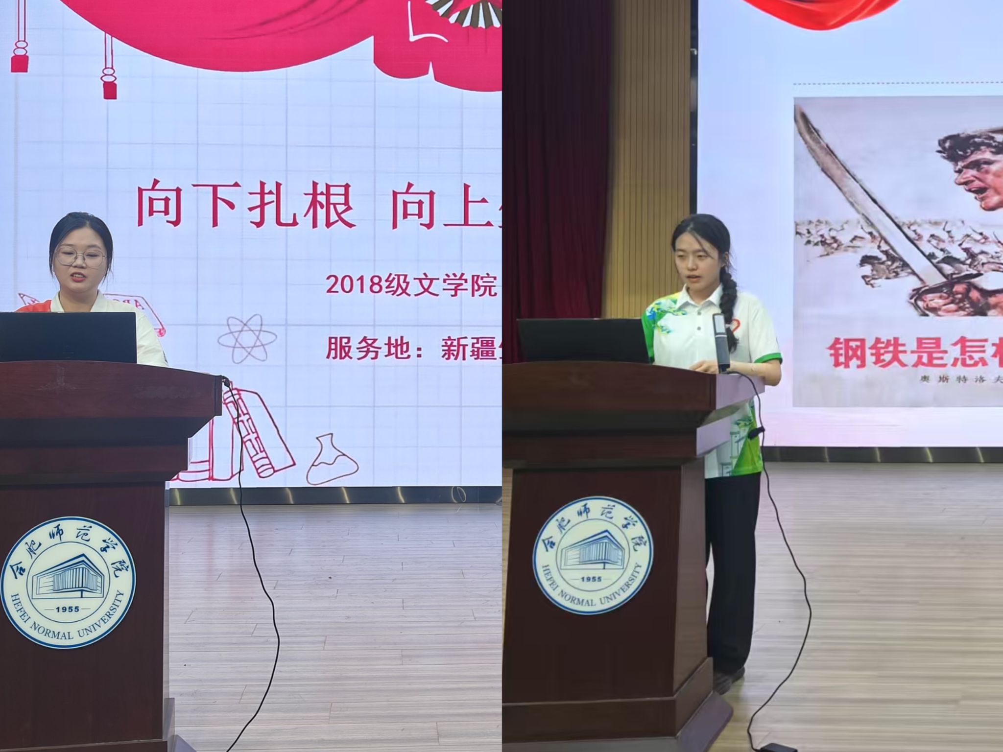 活动邀请西部计划优秀志愿者代表文学院2022届毕业生邓子怡、生物与食品工程学院2024届毕业生吴婷分享自己扎根西部、服务乡村振兴的经历。邓子怡来到新疆生产建设兵团第二师二十四团后,在校学习网络与新媒体专业的她,在零下十几度的雪地拍摄专题片时、在听老军垦讲述“一手拿枪、一手拿镐”的故事里,不断地用文字和镜头记录兵团故事。两年服务期内累计发布微信推文800余条、宣传稿件50余篇、拍摄制作10余部专题宣传片。其中,一条反映兵团职工丰收喜悦的短视频被“学习强国”APP采用,让更多人看到了新疆的美丽风光和兵团人的奋斗身影。