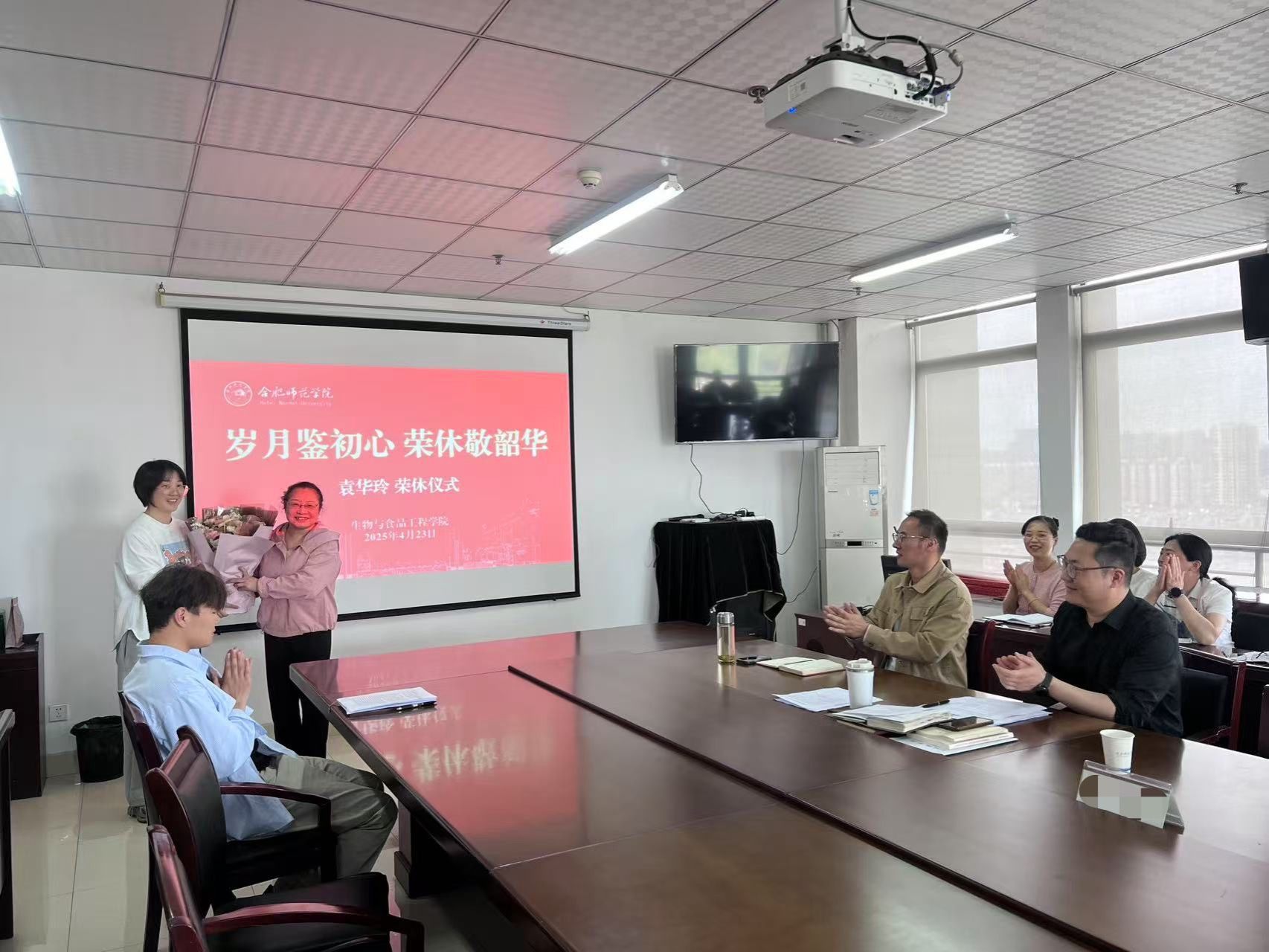 为深入学习贯彻全国教育大会精神,进一步弘扬尊师重教的良好风尚,凝聚教育强国建设力量,4月23日下午,生物与食品工程学院在行知楼1502为退休教师袁华玲举办了荣退仪式,全体教职工参加此次活动,仪式由院党委书记马喆主持。