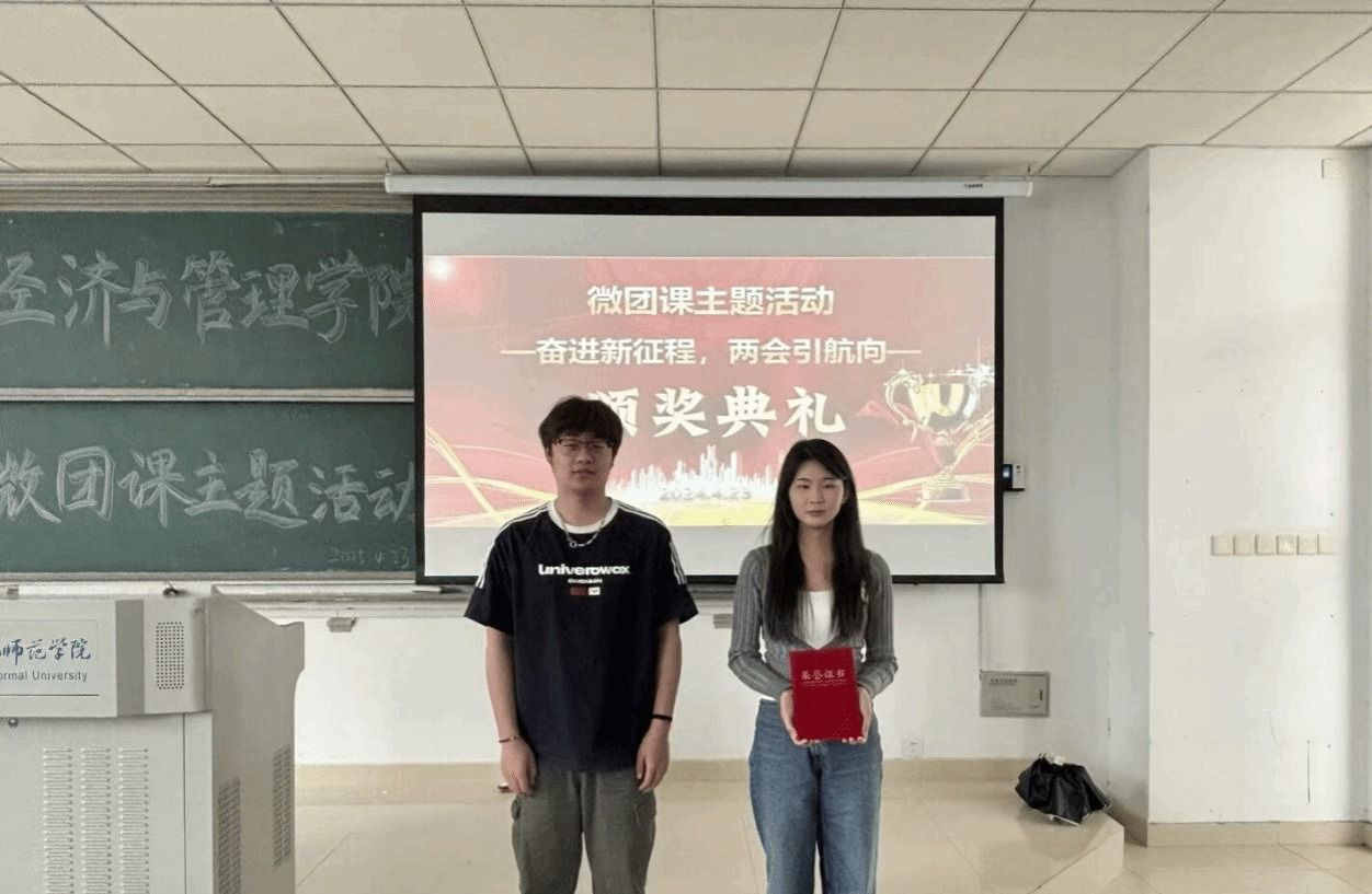 4月23日,经济与管理学院主办的"奋进新征程,两会引航向"微团课主题活动决赛在博学楼A205教室圆满收官。作为全国两会胜利召开后的特色思政教育活动,该赛事通过理论研习与实践展示相结合的形式,引领青年学子深学笃行两会精神,强化使命担当。活动自启动以来,八支队伍从初赛脱颖而出晋级决赛。