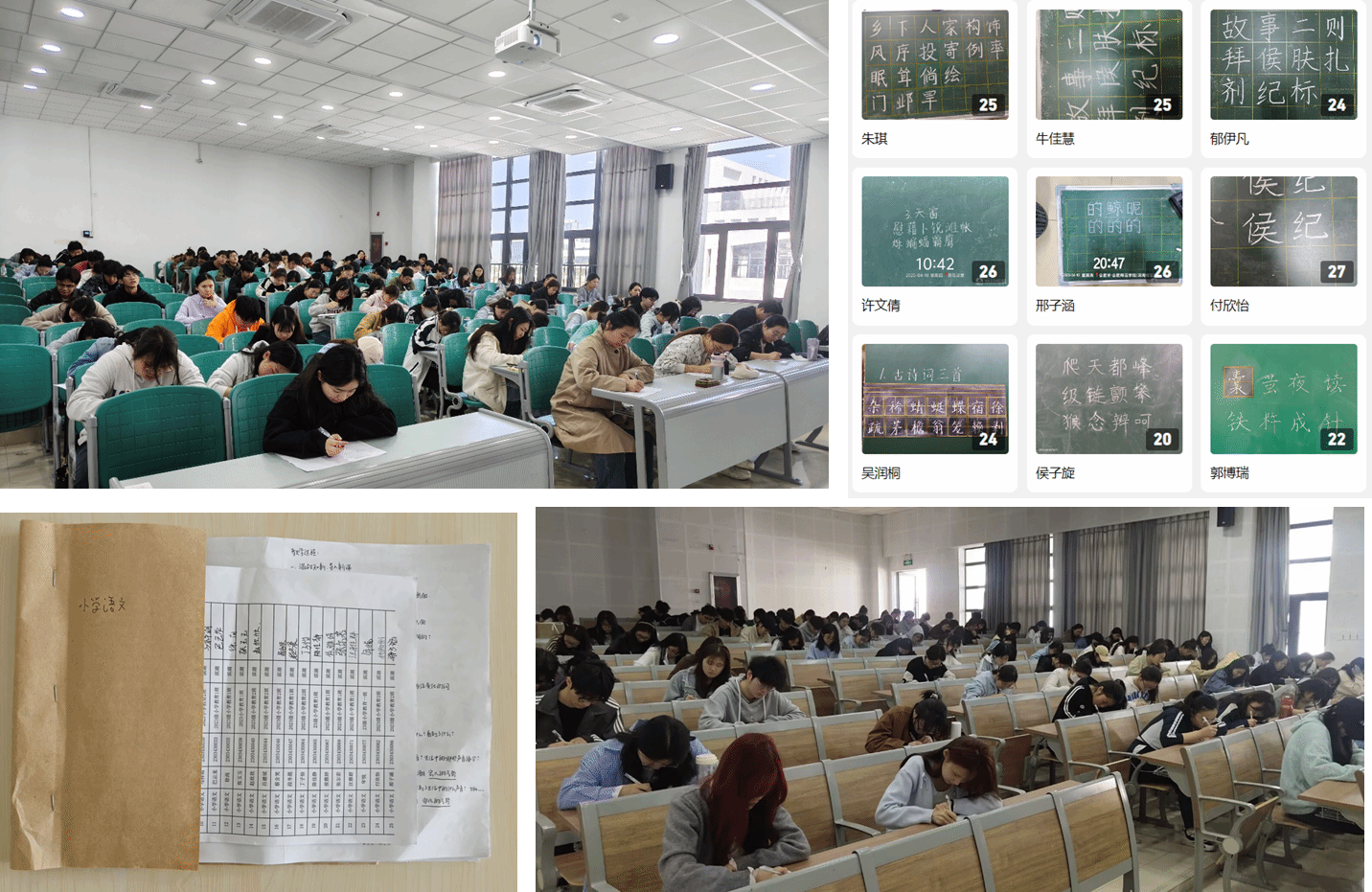 4月13日,大练兵活动首轮教案设计环节在滨湖和锦绣校区开展。上午10:00,滨湖校区博学楼内,参赛学生们全神贯注伏案疾书;14:00,锦绣校区博约楼的考场中同样笔尖飞动,紧张有序。笔试现场公布课题,在60分钟的限时挑战中,师范生们需完成一份涵盖学情分析和教材分析、教学目标、教学过程及板书设计的完整教案。