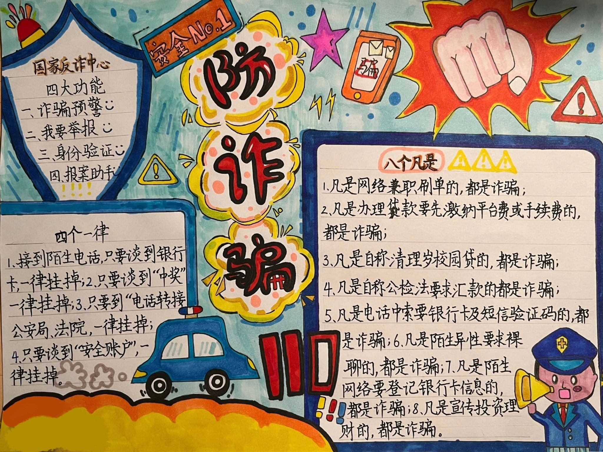活动催生多元反诈文化产品:学生绘制《网购诈骗流程图解》等可视化手抄报,用漫画分镜拆解“虚假客服”话术套路;创作《反诈三字经》《校园防骗Rap》等韵律作品,将“验证码=财产锁”等要点融入朗朗上口的节奏;借助短视频平台制作“宿舍反诈小剧场”,通过“兼职刷单陷阱”“虚假中奖弹窗”等生活化演绎,以Z世代语言解构诈骗逻辑。这些源自校园场景的原创作品,通过班级群、公众号等渠道传播,形成“创作-传播-教育”的良性循环。