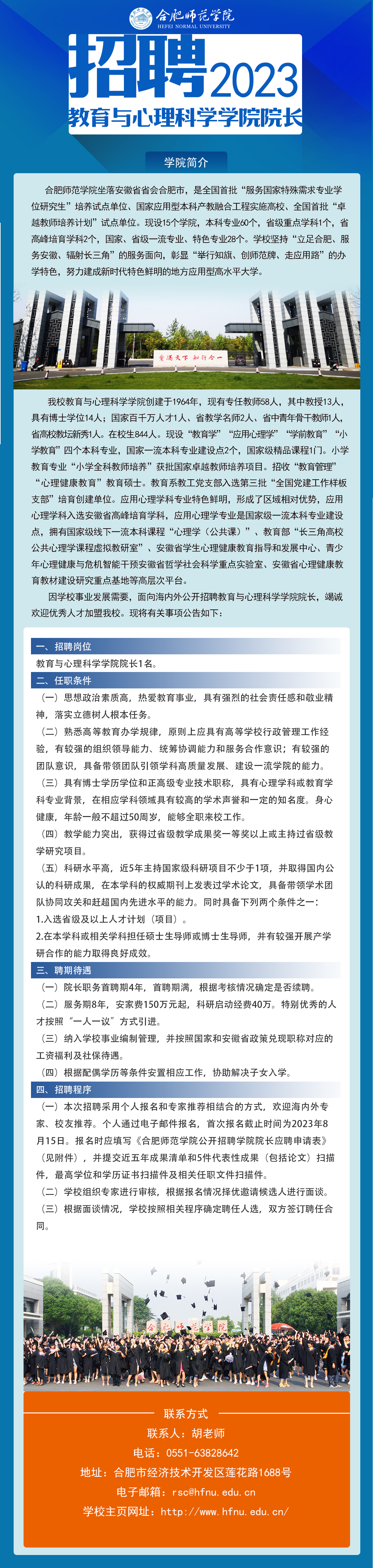 388vip太阳集团公开招聘教育与心理科学学院院长公告