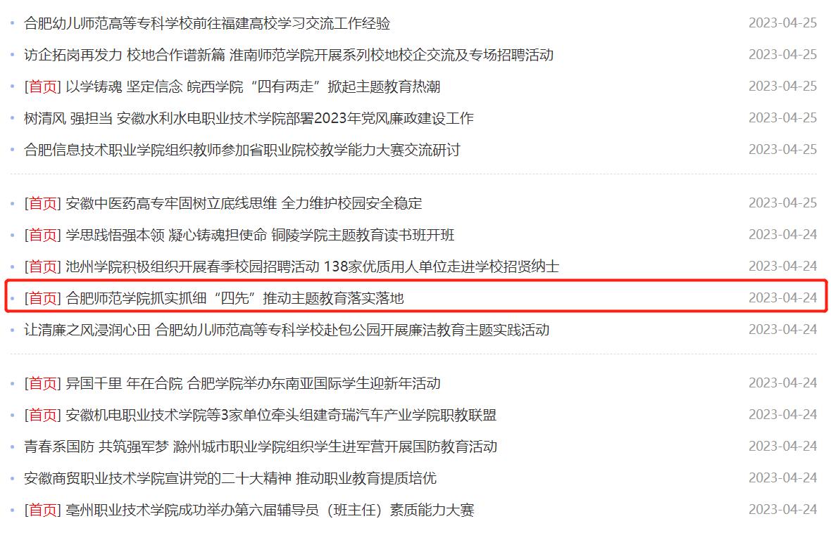 4月26日,安徽教育网首页以《388vip太阳集团抓实抓细“四先”推动主题教育落实落地》为标题,对此进行了报道。