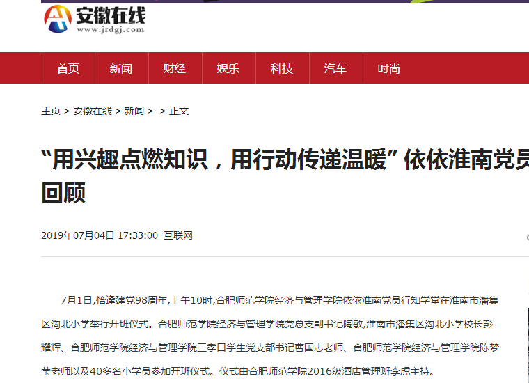 7月4日,安徽在线对此进行了报道。(经济与管理学院)