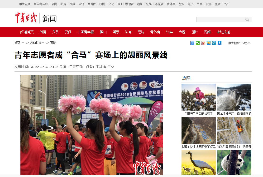 本网讯 11月11日,2018年合肥国际马拉松赛在合肥举行,我院负责提供本次大赛全部志愿者,共有3209名同学参与大赛各项志愿服务。中青在线、中安在线、新浪网等多家媒体对此进行了报道。(院团委)