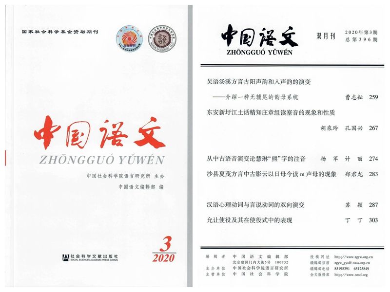 《中国语文》刊发计丽的科研论文《从中古语音演变论慧琳“熊”字的注音》